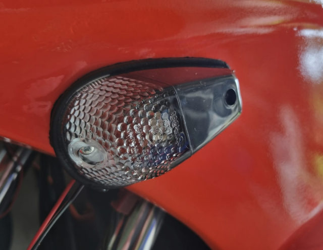Die Verkleidungs-Blinker sehen doch etwas schicker aus als die Originalen – aber das ist ja Geschmackssache. Mit Montagekleber befestigt – bei Amazon gekauft.