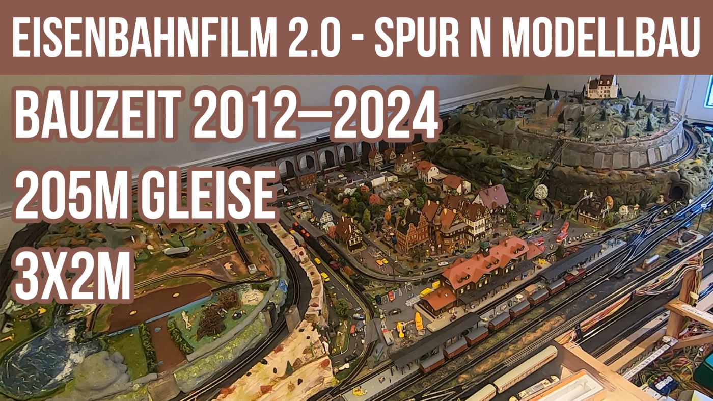 DetailsEisenbahn Spur N Bauzeit 2012 – 2024 Plattenmasse: 2816 mm x 2000mm Gleise: Gesamte Gleislänge: 204,66 m Anzahl Weichen: 63 Entkupplungsgleise: 9 Technik: 98 Lokomotiven, davon 35 Dampfloks, 38 Dieselloks und 25 E-Lokomotiven 149 Waggons, davon 75 Personenwaggons (44 beleuchtet) und 74 Güterwaggons. 5 Trafos 2 Gleichstrom Transformatoren für 12V und 24V. (LED und Relais…