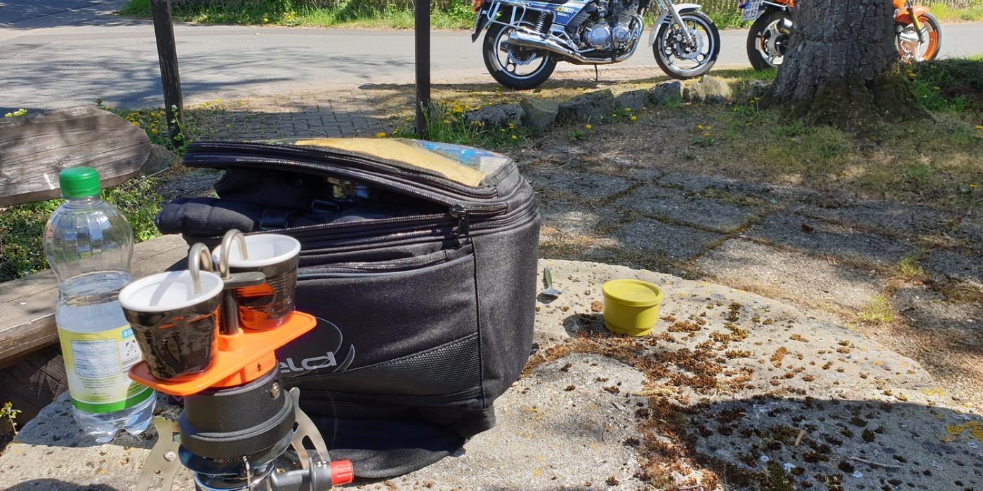 Das taten wir dann auch. Zwar war der „Rastplatz“ etwas in die Jahre gekommen, aber es halt allemal zum Kaffee-Kochen und Rauchen gereicht. Ja, genau: Kaffee-Kochen. Wir hatten den Schottland und Pyrenäen-geprüften Espressokocher und den Feuerzeuggasbrenner mit. Zack waren die Augen wieder auf und es ging weiter 🙂