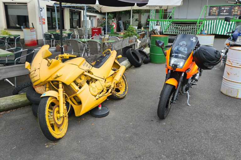 Auf unserer Eifeltour 2024 haben wir am Straßenrand die gelbe, verranzte GPZ entdeckt und sind dadurch auf das Lokal „Zu den 4 Winden“ in Rheinbach…