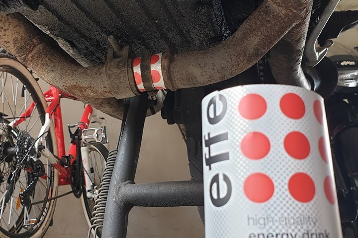 Hat ja damals im Urlaub mit RedBull auch schon geklappt. Jetzt musste kurzerhand ne Effect-Sode dran glauben. Mit der Schelle drumgeschraubt, ist nun erstmal wieder…